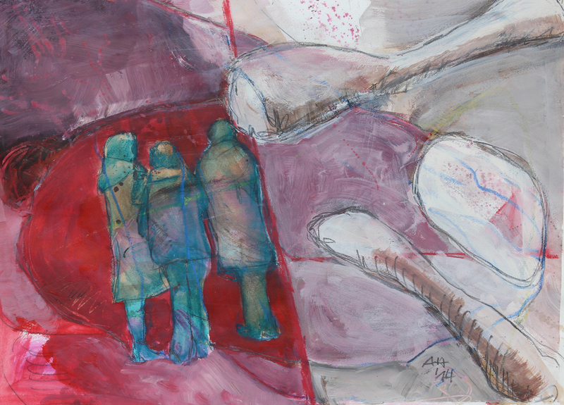 7 Arbeiten, mixed media auf Papier, 30 x 40 cm, 2015