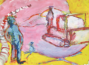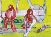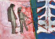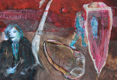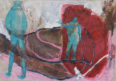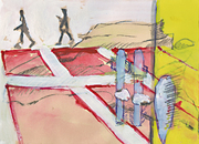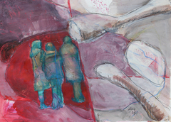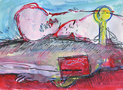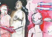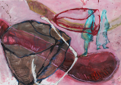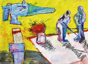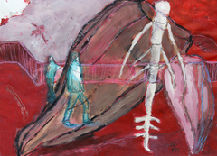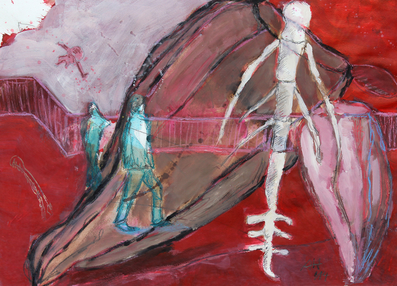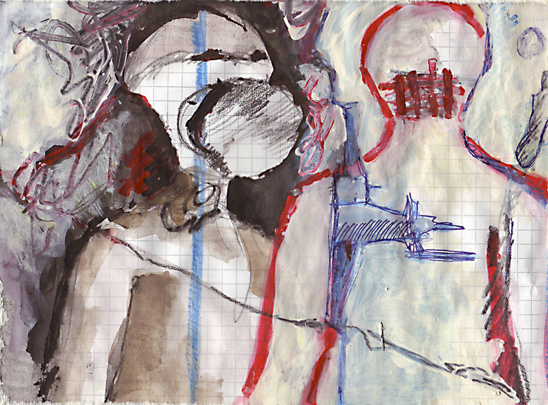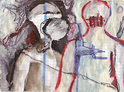 Anfang der 90iger Jahre entstehen meine ersten seriellen und grafischen Arbeiten in Mischtechnik. In diesen Arbeiten werden inhaltlich scheinbar zusammenhanglose Elemente wie Gesichter, Körper, Pflanzen, Maschinenteile und Knochen kombiniert und in einem neuen Kontext gebracht. Dabei bediene ich mich verschiedener malerischer und zeichnerischer Mittel wie Gouache, Aquarell, Tusche, Ölkreiden, Farb- und Grafitstiften.